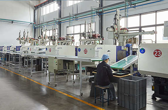 全自動射出成形が3ライン、海天射出成形機が36台を備えています。