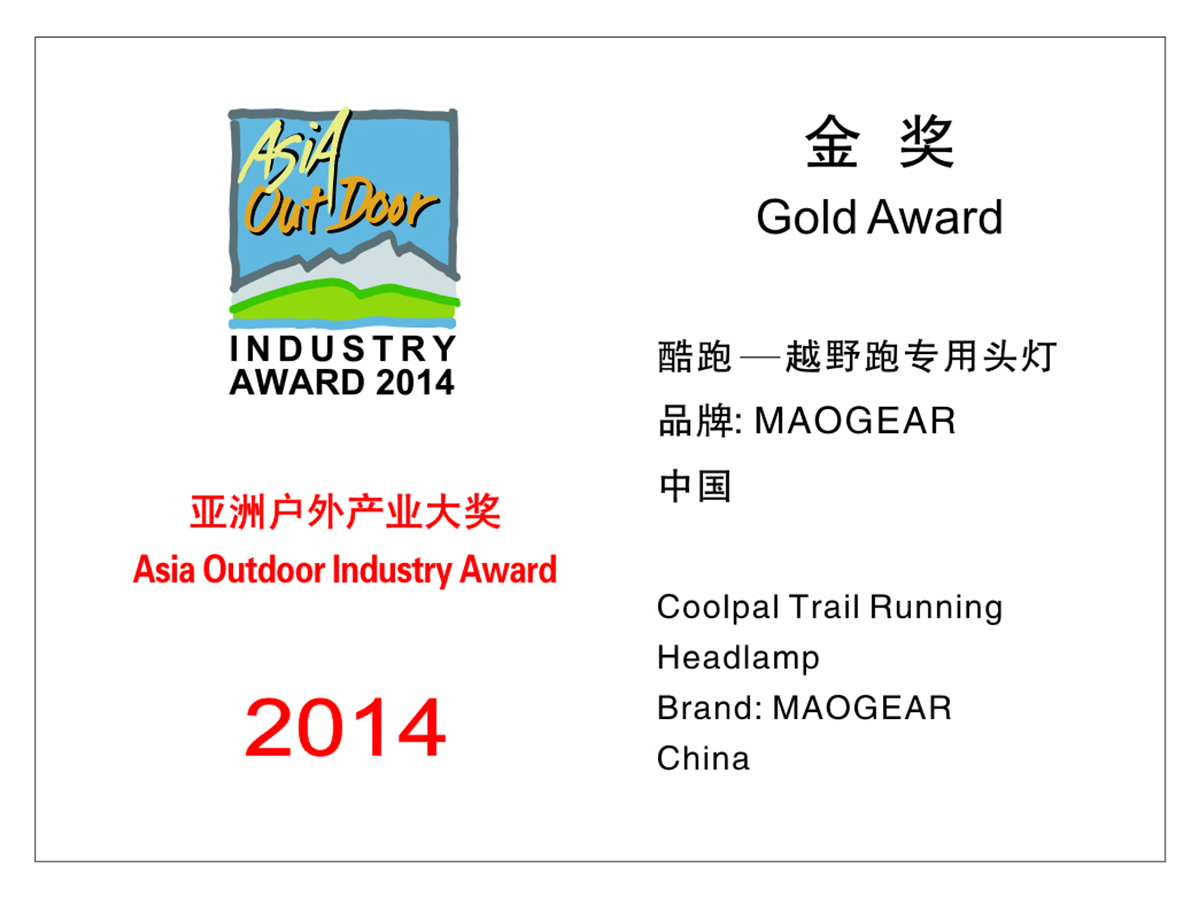 Coolpal (クロスカントリー用ヘッドライト)が 「Asia Outdoor Industry Award 2014」で金賞受賞
